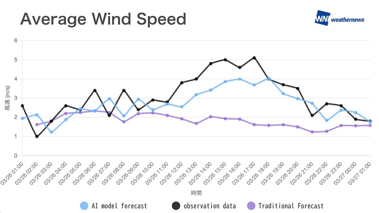 The speed of implementation is particularly impressive: AI-powered forecasts can be delivered in as little as two weeks after installation. Because data is managed on Weathernews' cloud infrastructure, the entire workflow—from installation to data availability and forecast integration—is exceptionally streamlined. With more than two months of observational data, forecast accuracy improves even further.